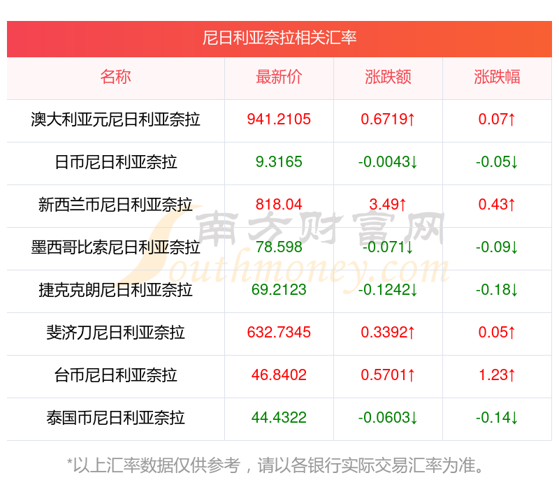南方財(cái)富網(wǎng)為您提供尼日利亞奈拉對(duì)利幣匯率最新價(jià)格詳情。