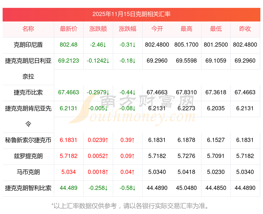 2025年11月15日克朗相關(guān)匯率查詢