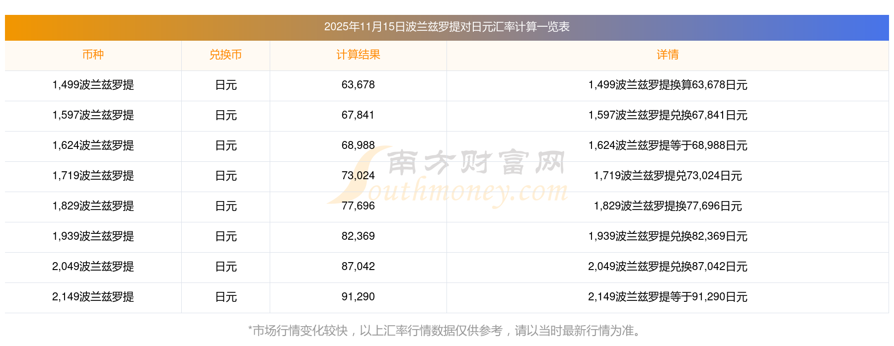 今天波幣對日元匯率多少?今日匯率計算方法2025/11/15