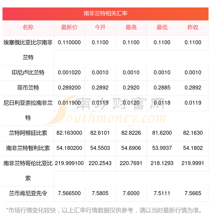 2025年11月15日南非蘭特相關(guān)匯率查詢