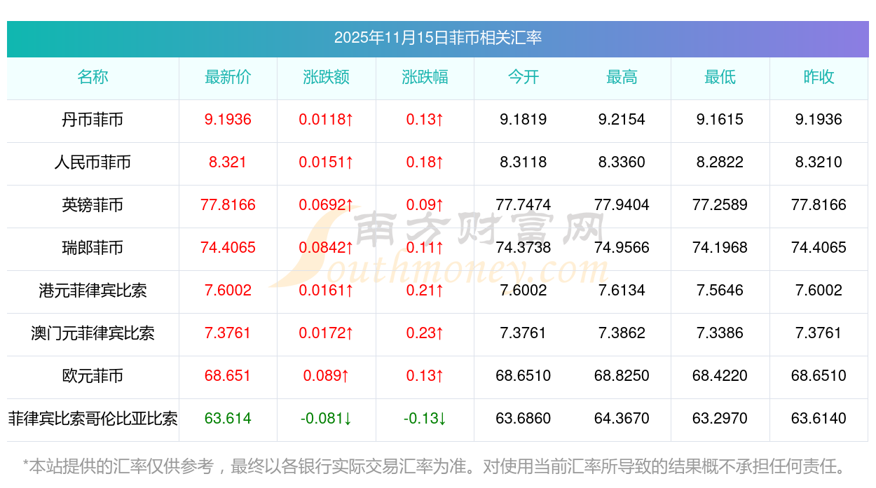 2025年11月15日菲幣相關(guān)匯率查詢