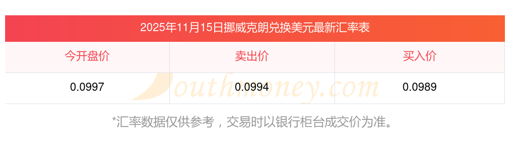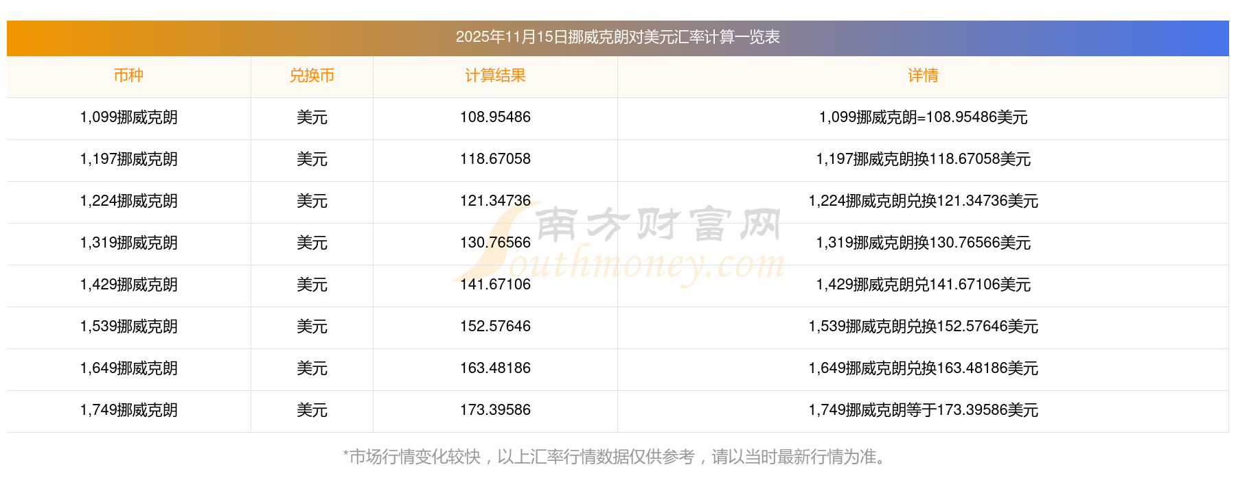 南方財(cái)富網(wǎng)為您提供挪威克朗對(duì)美元匯率最新價(jià)格詳情。