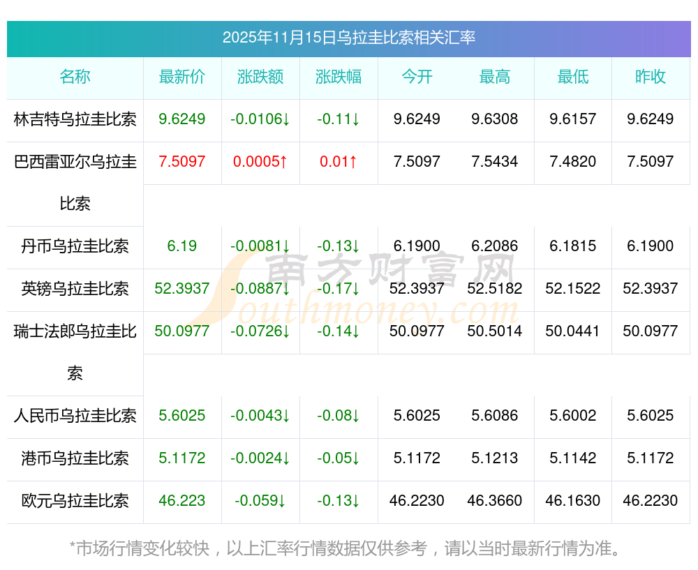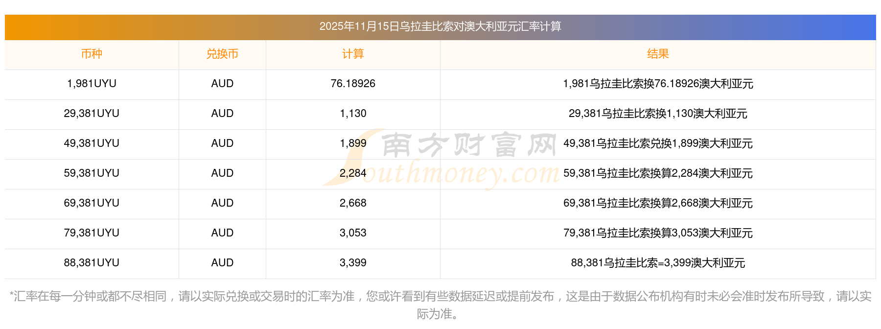 匯率調(diào)整新消息:烏拉圭比索兌澳大利亞元匯率查詢(xún)表11-15