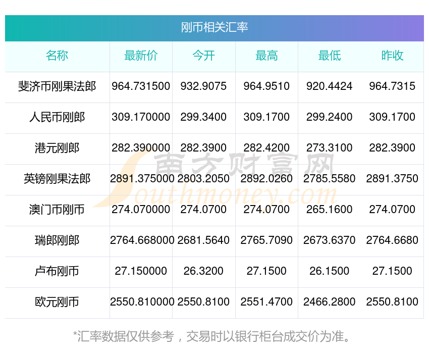 南方財(cái)富網(wǎng)為您提供剛幣對(duì)南非蘭特匯率最新價(jià)格詳情。
