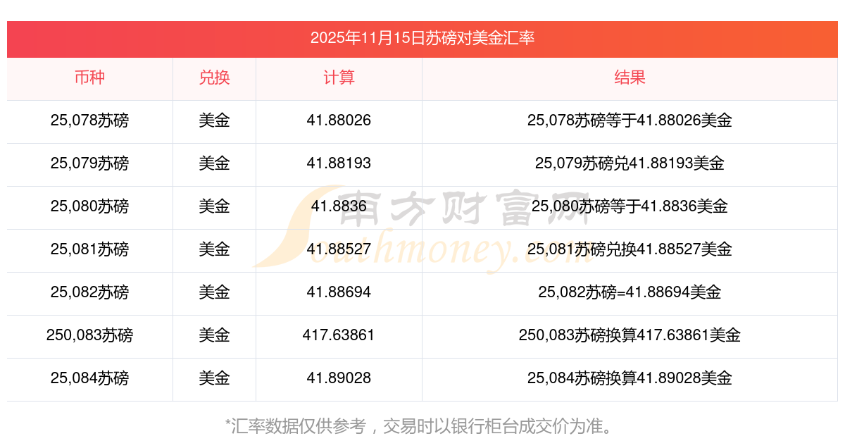 南方財(cái)富網(wǎng)為您提供蘇磅對(duì)美金匯率最新價(jià)格詳情。