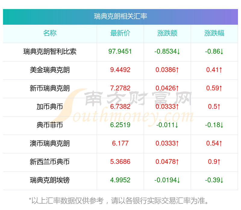 南方財(cái)富網(wǎng)為您提供瑞典克朗對(duì)泰銖匯率最新價(jià)格詳情。