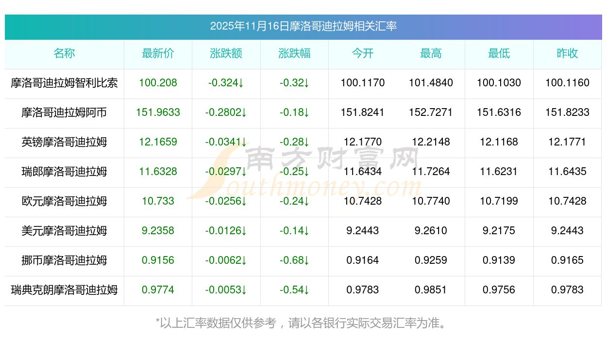 2025年11月16日摩洛哥迪拉姆相關(guān)匯率查詢