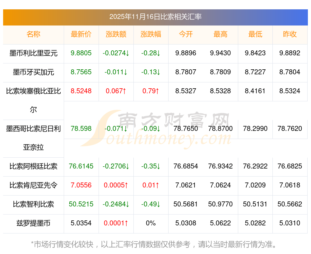 2025年11月16日比索相關(guān)匯率查詢