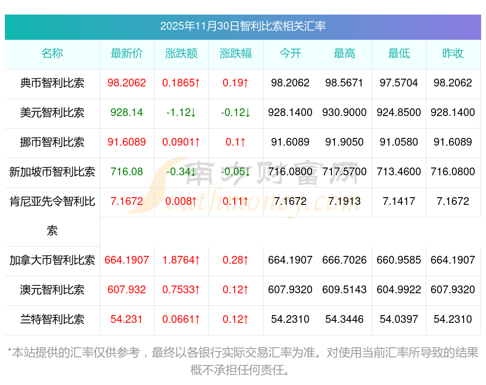 2025年11月30日智利比索相關(guān)匯率查詢