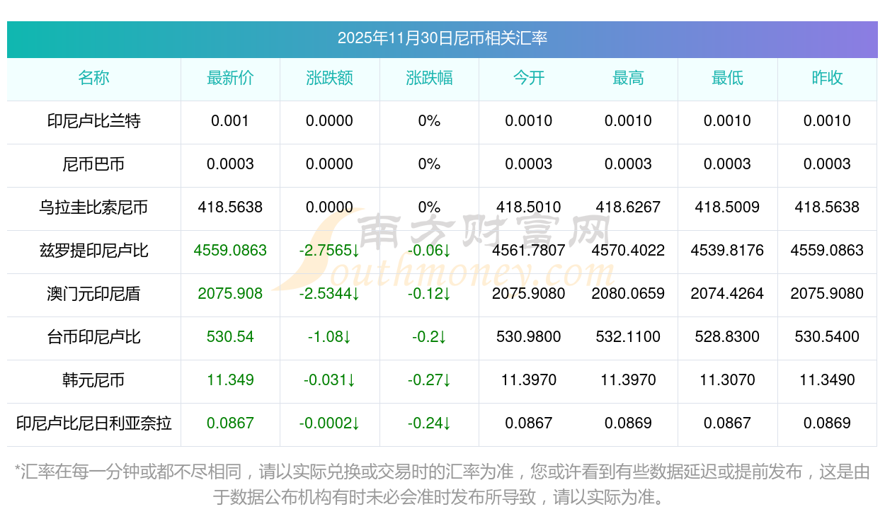根據(jù)2025年11月30日匯率計(jì)算,IDR兌換HKD匯率最新價(jià)0.000467:今開價(jià)0.0005,昨收價(jià)0.0005,最高價(jià)0.0005,最低價(jià)0.0005。