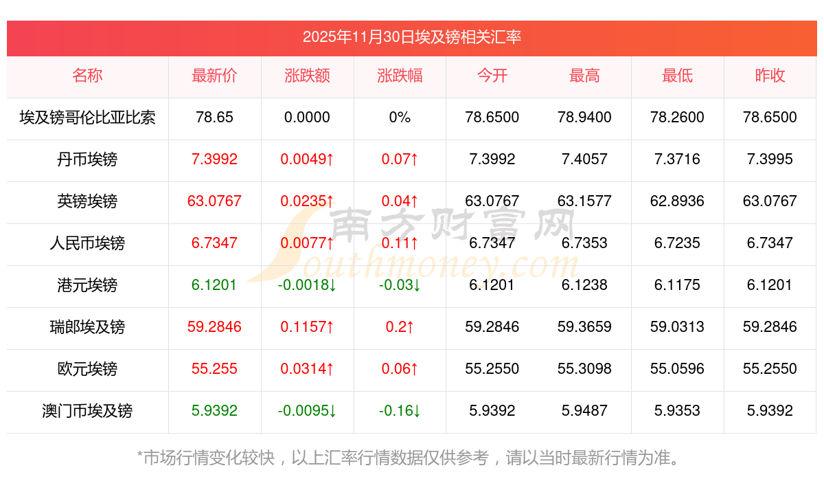 2025年11月30日埃及鎊相關(guān)匯率查詢