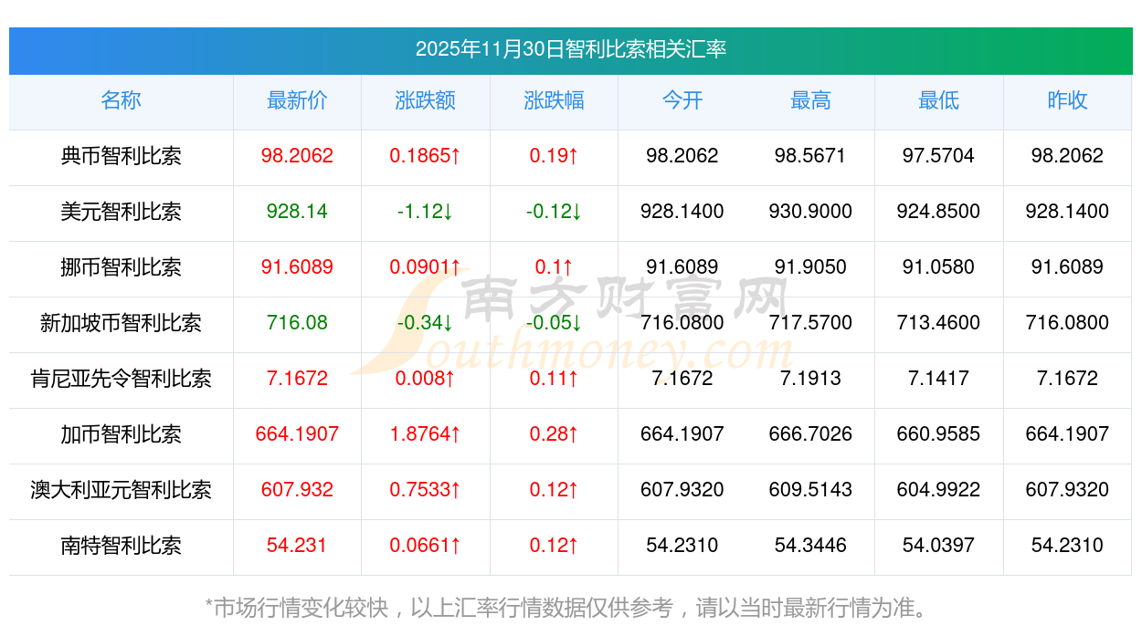 2025年11月30日智利比索相關(guān)匯率查詢