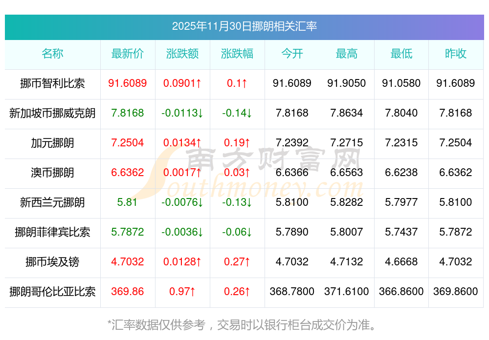 根據(jù)2025年11月30日匯率計(jì)算,NOK兌換PHP匯率最新價(jià)5.787200:今開(kāi)價(jià)5.7890,昨收價(jià)5.7872,最高價(jià)5.8007,最低價(jià)5.7437。