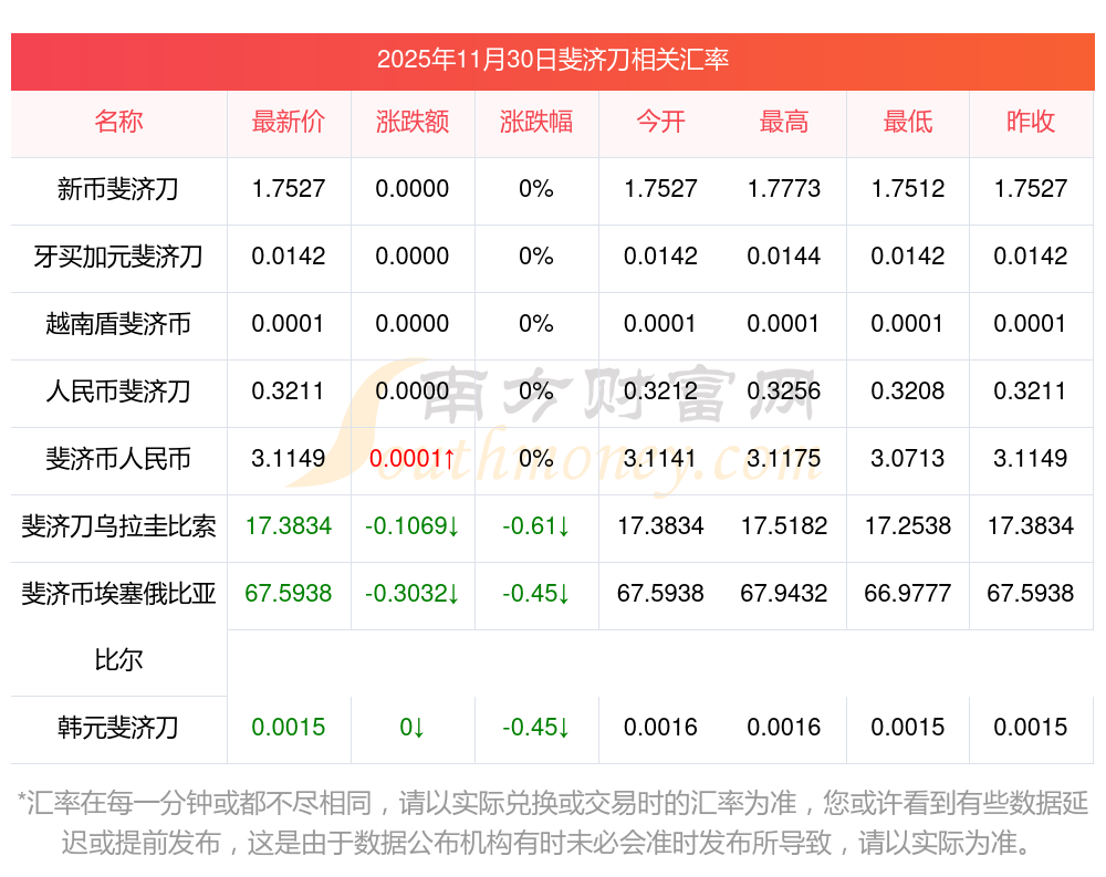 2025年11月30日斐濟刀相關(guān)匯率查詢