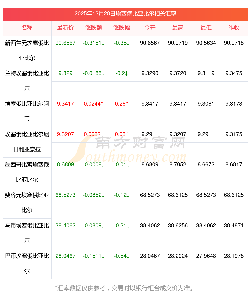 2025年12月28日埃塞俄比亞比爾相關匯率查詢