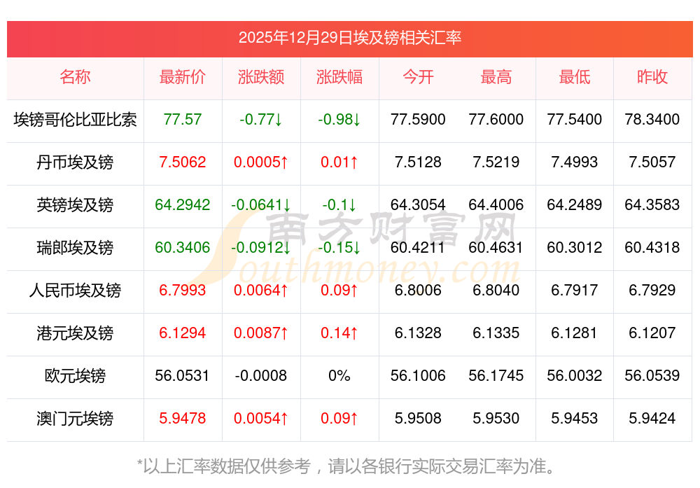 南方財富網(wǎng)為您提供埃及鎊對歐元匯率最新價格詳情。