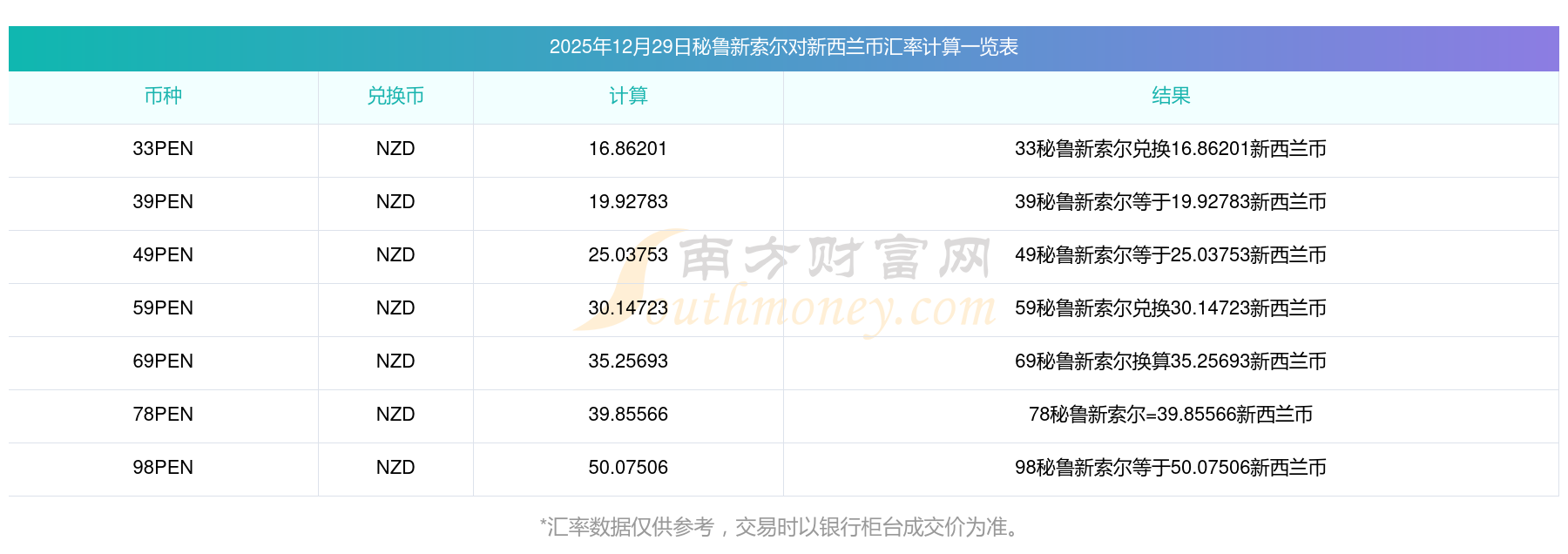 南方財(cái)富網(wǎng)為您提供秘魯新索爾對(duì)新西蘭幣匯率最新價(jià)格詳情。