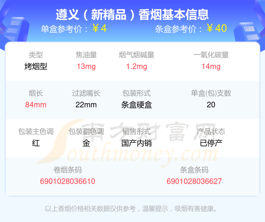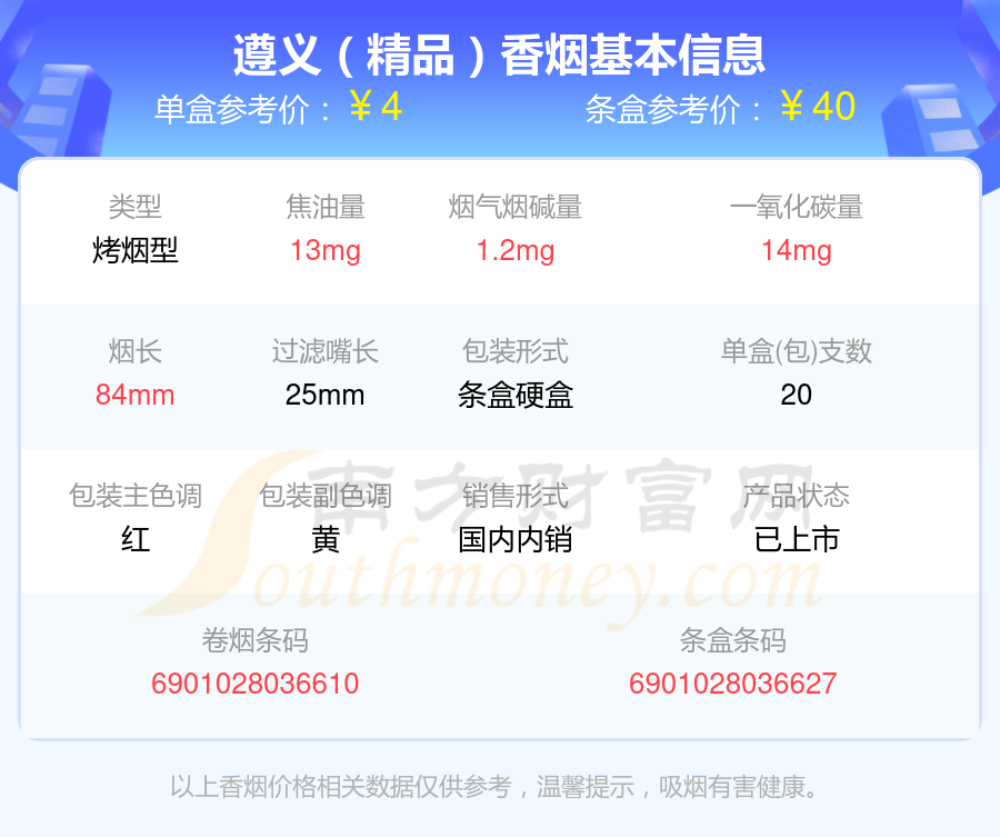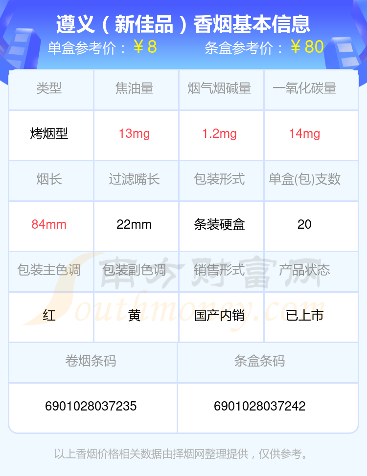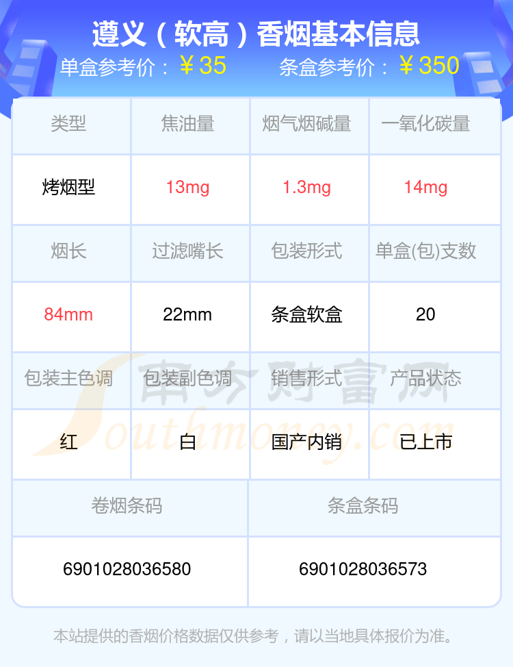 擇煙網(wǎng)為大家盤點(diǎn)了煙堿量低于4mg的遵義香煙,分別有遵義(軟高)、遵義(精品)、遵義(新佳品)、遵義(新精品)、遵義(硬高)、遵義(軟)等,具體價(jià)格如下: