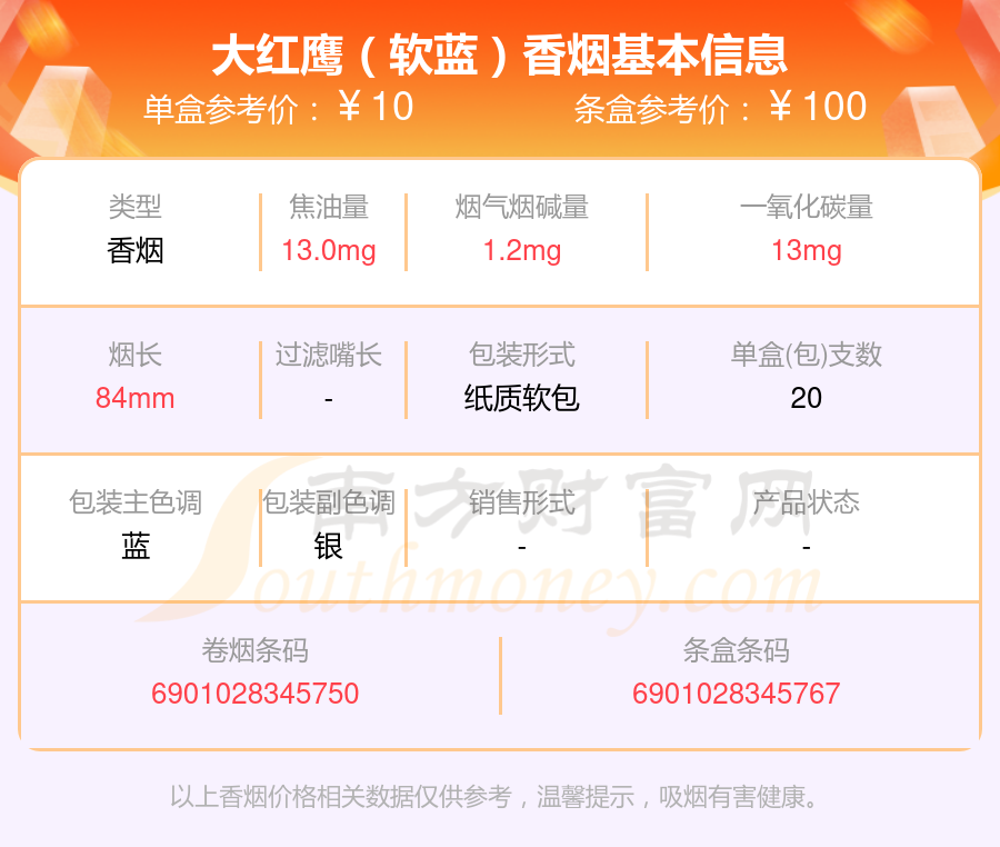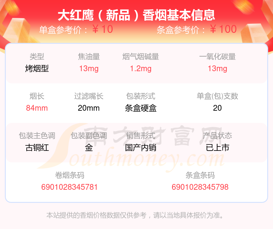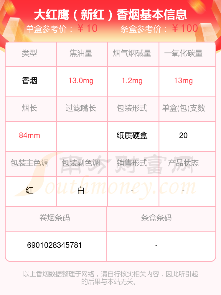 低于十元的大紅鷹香煙有哪些?擇煙網為大家整理盤點,分別有:大紅鷹(軟新品)、大紅鷹(軟藍)、大紅鷹(新紅)、大紅鷹(新品)等,具體價格如下: