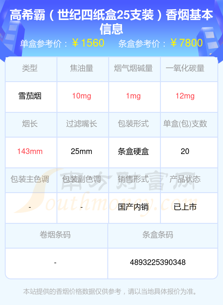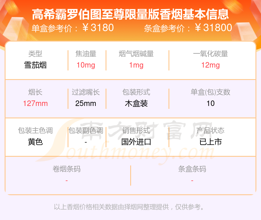 以上香煙數(shù)據(jù)整理于網(wǎng)絡(luò),請自行核實相關(guān)內(nèi)容,因此所引起的后果與本站無關(guān)。