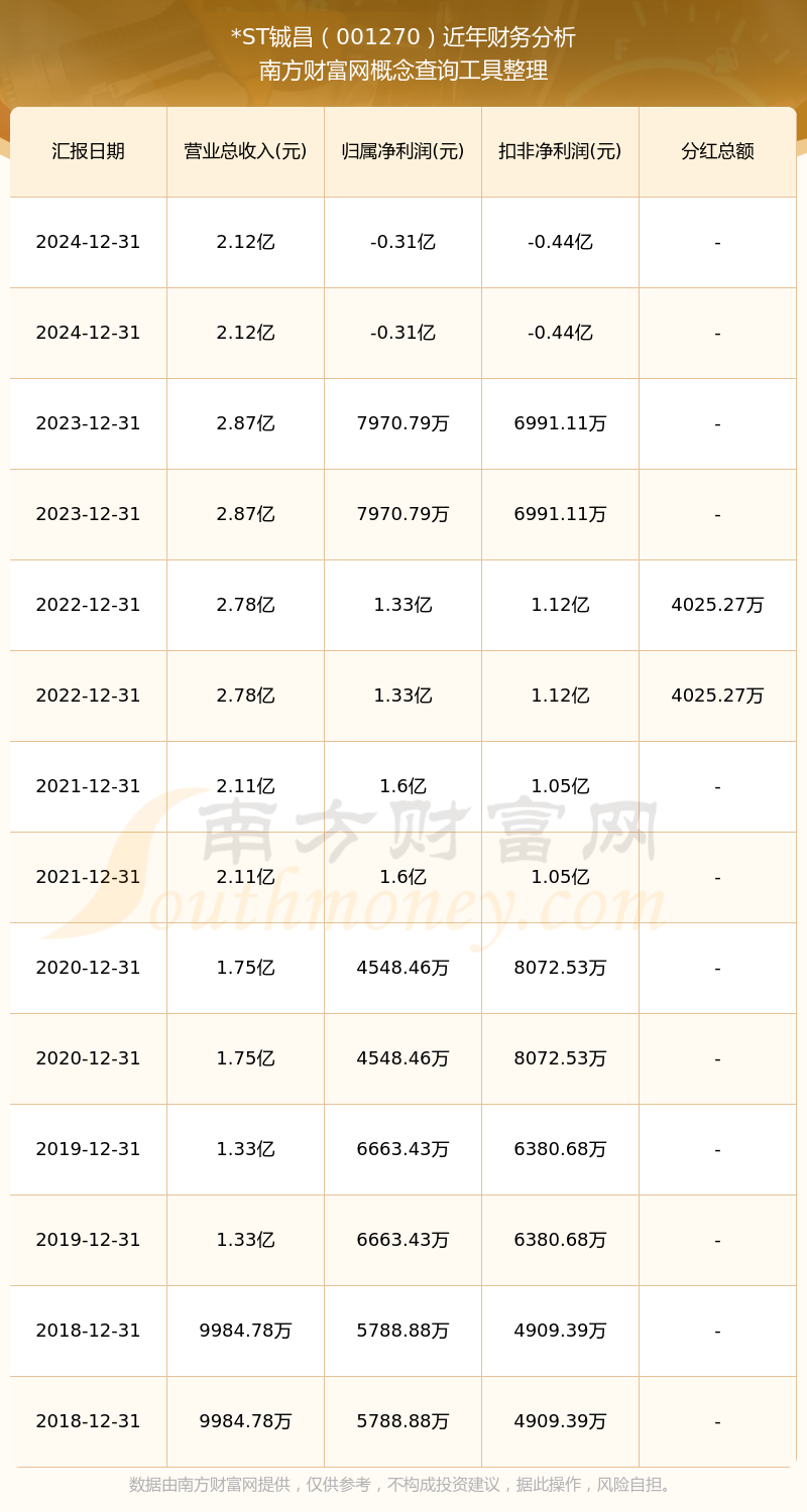 *ST鋮昌歷年分紅派息情況如下表所示: