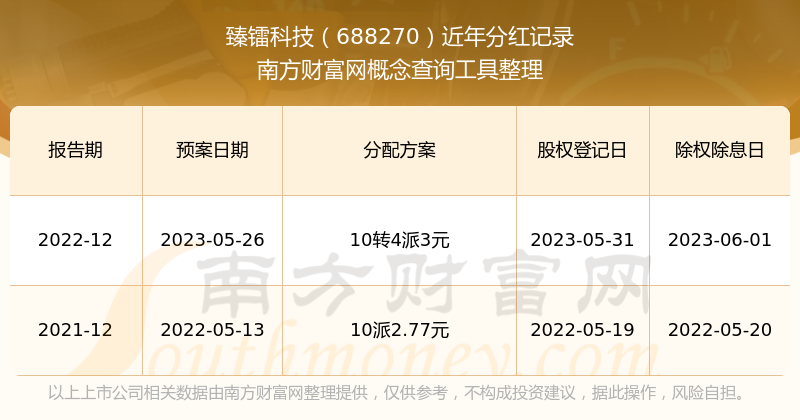 臻鐳科技最新一次公布的分紅方案:10轉(zhuǎn)4派3元。