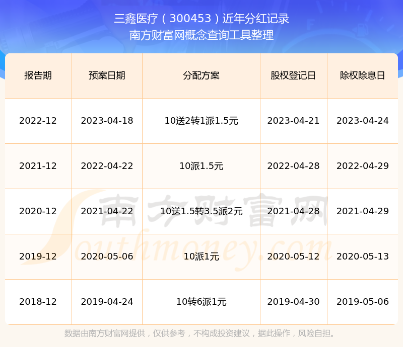 近年三鑫醫(yī)療分紅派息情況如下表所示: