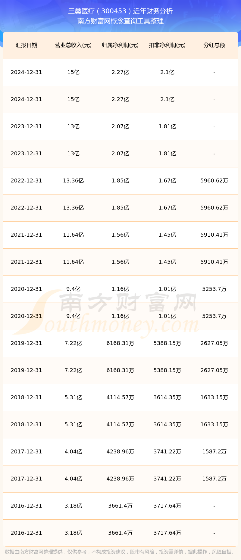 2024年報顯示,三鑫醫(yī)療實現(xiàn)營收15億,同比增長15.41%;凈利潤2.27億,同比增長10.05%;毛利率35.33%。