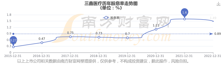三鑫醫(yī)療歷年股息率走勢如下圖: