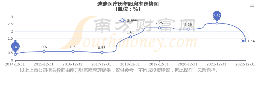 近年迪瑞醫(yī)療年度股息率走勢(shì)如下圖: