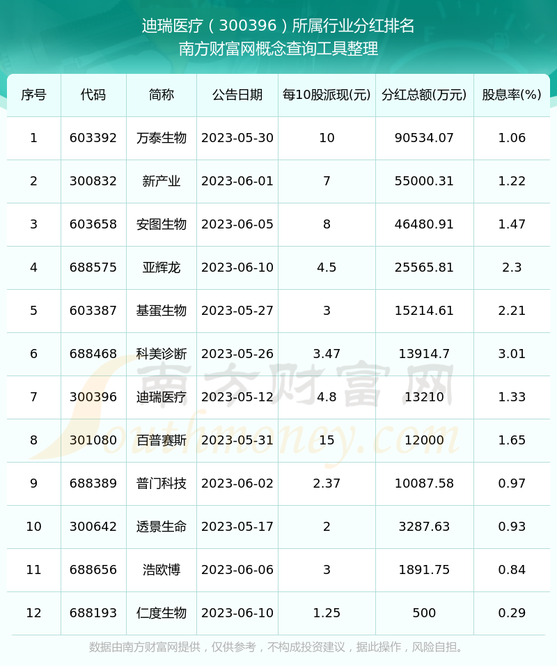 二、迪瑞醫(yī)療300396行業(yè)分紅排名
