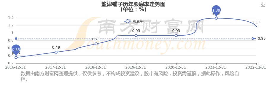近年鹽津鋪子年度股息率走勢如下圖: