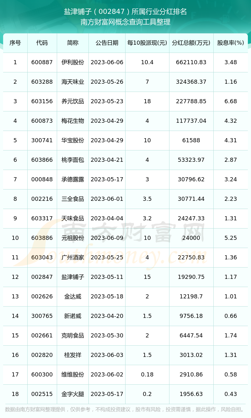 二、鹽津鋪子002847行業(yè)分紅排名