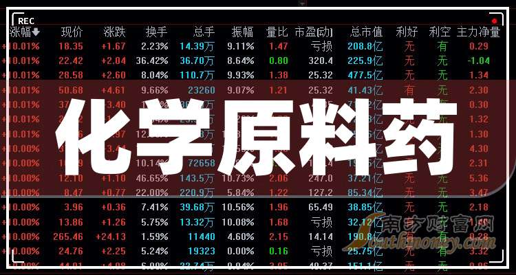 據(jù)南方財富網(wǎng)概念查詢工具數(shù)據(jù)顯示,相關(guān)化學(xué)原料藥概念股有: