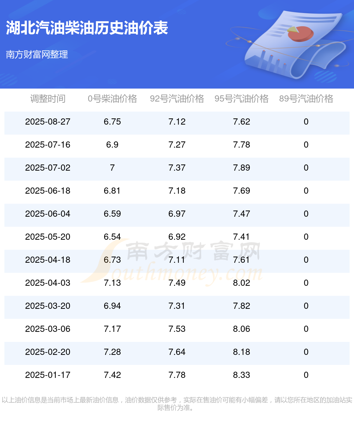 油價(jià)數(shù)據(jù)僅供參考,請(qǐng)以您所在地區(qū)的加油站報(bào)價(jià)為準(zhǔn)。南方財(cái)富網(wǎng)發(fā)布此信息的目的在于傳播更多信息,對(duì)使用該油價(jià)信息所導(dǎo)致的結(jié)果概不承擔(dān)任何責(zé)任。