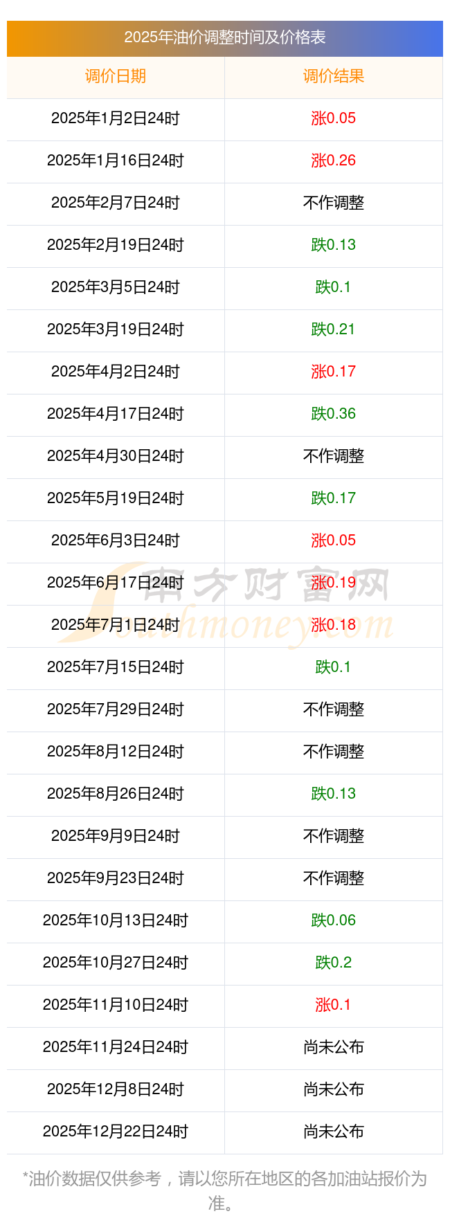 河北2025年最新汽油柴油調(diào)整時(shí)間表
