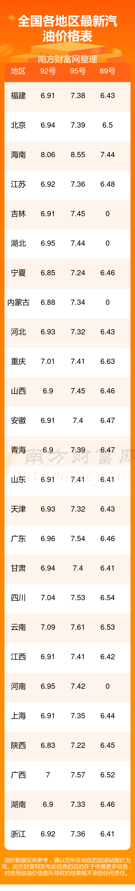 汽油價格調整最新消息:下一輪油價調整11月24日24時開啟。本次油價的調整時間為11月11日,調整后全國92號汽油平均價格為7元每升,其中,最低的是陜西,6.83元每升,最高的是海南,8.06元每升。全國95號汽油平均價格為7元每升,其中,最低的是陜西,7.22元每升,最高的是海南,8.55元每升。全國0號柴油平均價格為:7元每升,其中,最低的是內蒙古,6.46元每升,最高的是海南,6.67元每升。全國89號汽油平均價格為7元每升,其中,最低的是浙江,6.41元每升,最高的是海南,7.44元每升。