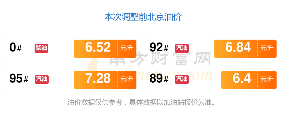 以上數(shù)據(jù)僅供參考,請(qǐng)以您所在地區(qū)的加油站實(shí)際售價(jià)為準(zhǔn)。南方財(cái)富網(wǎng)發(fā)布此信息的目的在于傳播更多信息,對(duì)使用該油價(jià)信息所導(dǎo)致的結(jié)果概不承擔(dān)責(zé)任。