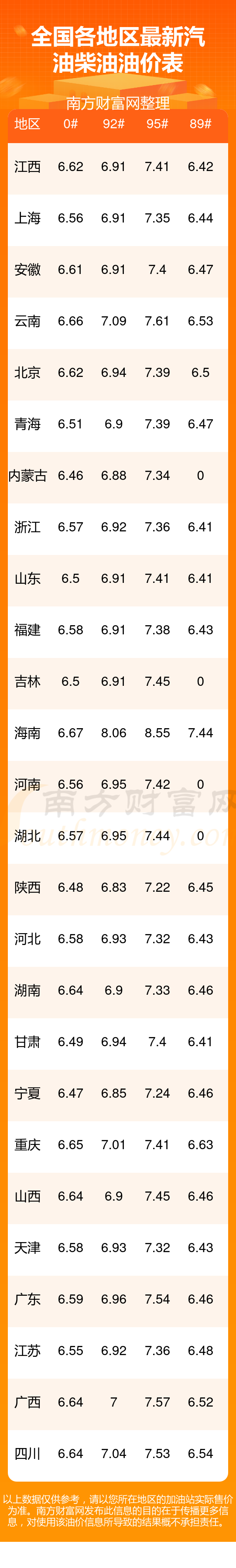 2025年11月16日全國油價調(diào)整及最新汽油價格表