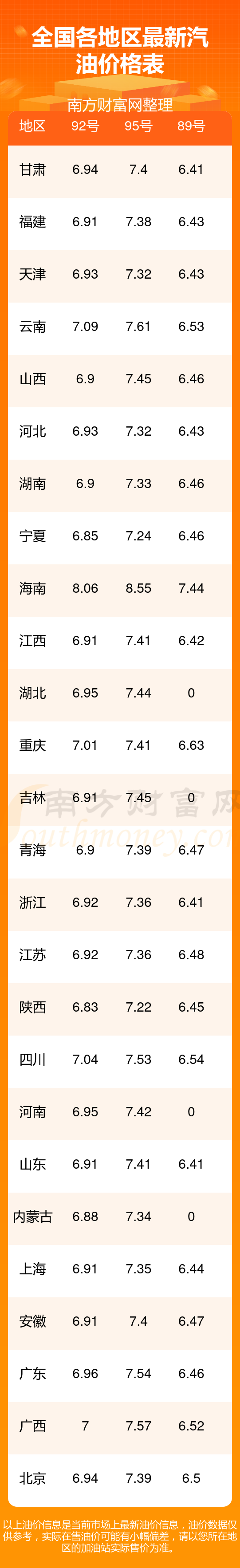 2025年11月16日全國油價調(diào)整及最新汽油價格表