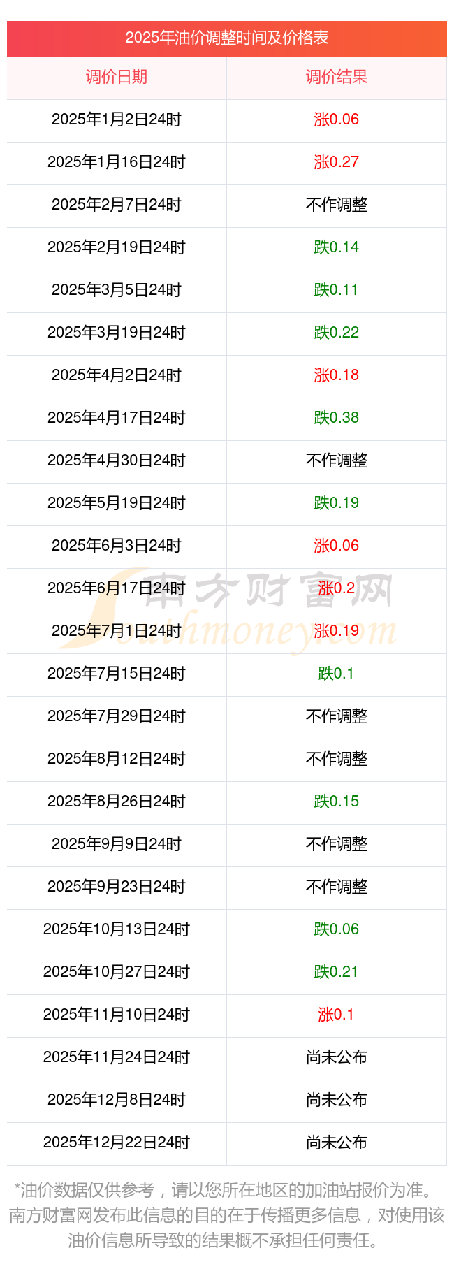 2025年11月16日全國油價調(diào)整時間及價格一覽表