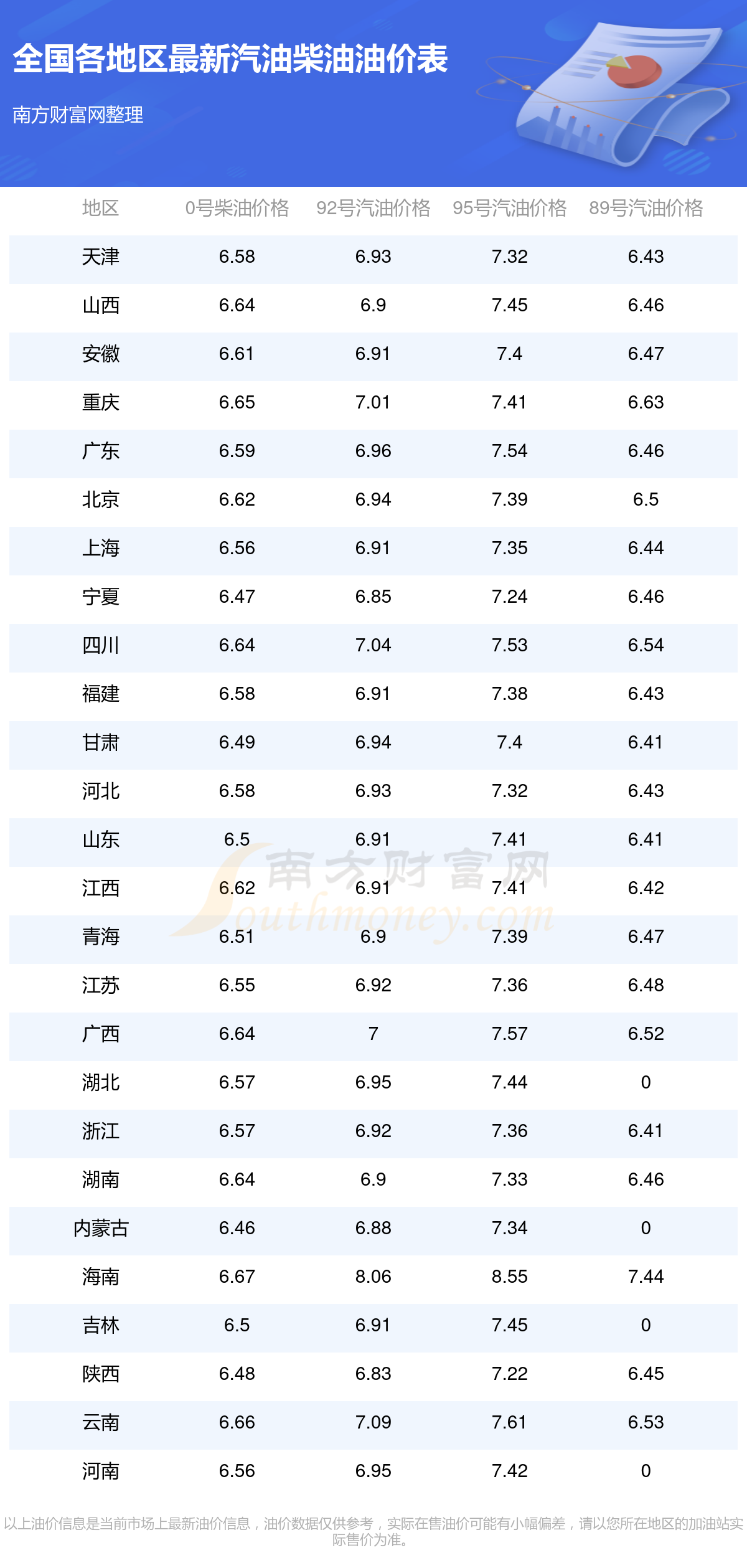 2025年11月16日全國(guó)油價(jià)調(diào)整及最新汽油價(jià)格表