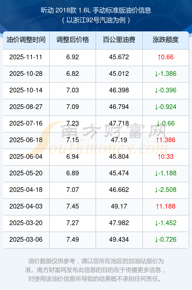 依照11月11日92號(hào)汽油最新調(diào)整價(jià)格6.92元/升來計(jì)算(以浙江為例),該車型百公里的平均油費(fèi)是45.672元,依照上一輪10月28日調(diào)整價(jià)格6.82元/升來計(jì)算,百公里的平均油費(fèi)是45.012元,對(duì)比上一輪多花0.66元,下一輪的油價(jià)調(diào)整時(shí)間11月24日24時(shí)。