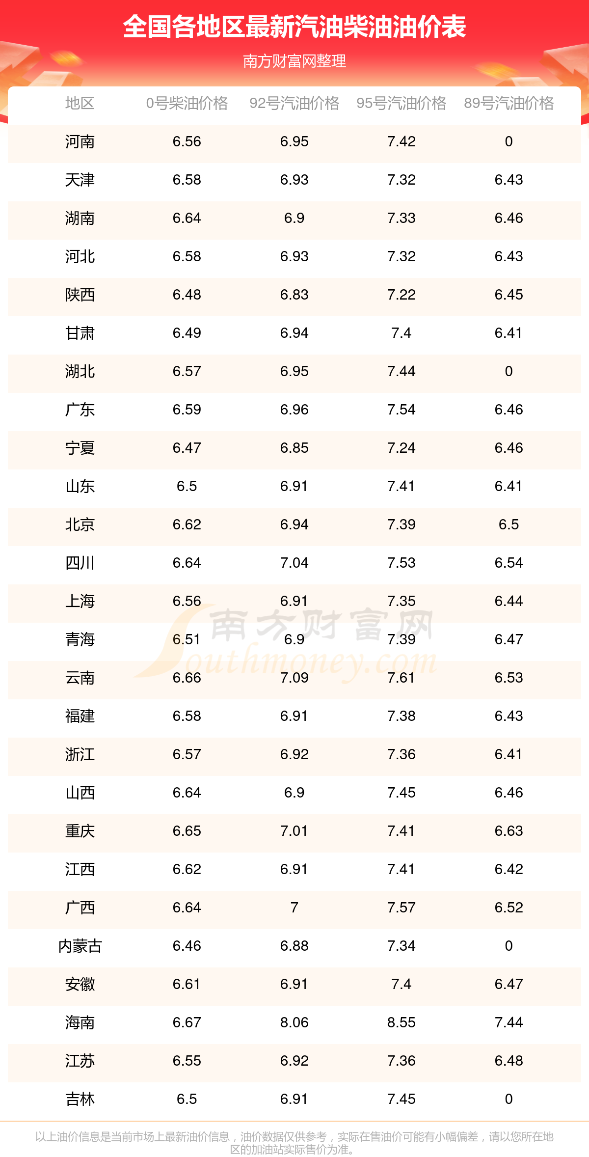 油價(jià)數(shù)據(jù)僅供參考,請以您所在地區(qū)的各加油站報(bào)價(jià)為準(zhǔn)。