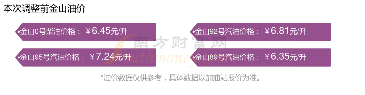 油價(jià)數(shù)據(jù)僅供參考,請(qǐng)以您所在地區(qū)的加油站報(bào)價(jià)為準(zhǔn)。南方財(cái)富網(wǎng)發(fā)布此信息的目的在于傳播更多信息,對(duì)使用該油價(jià)信息所導(dǎo)致的結(jié)果概不承擔(dān)任何責(zé)任。