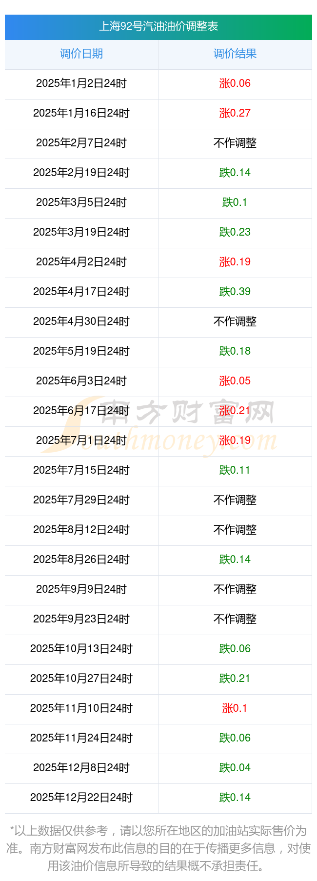 2025年油價(jià)調(diào)整時(shí)間一覽表及價(jià)格