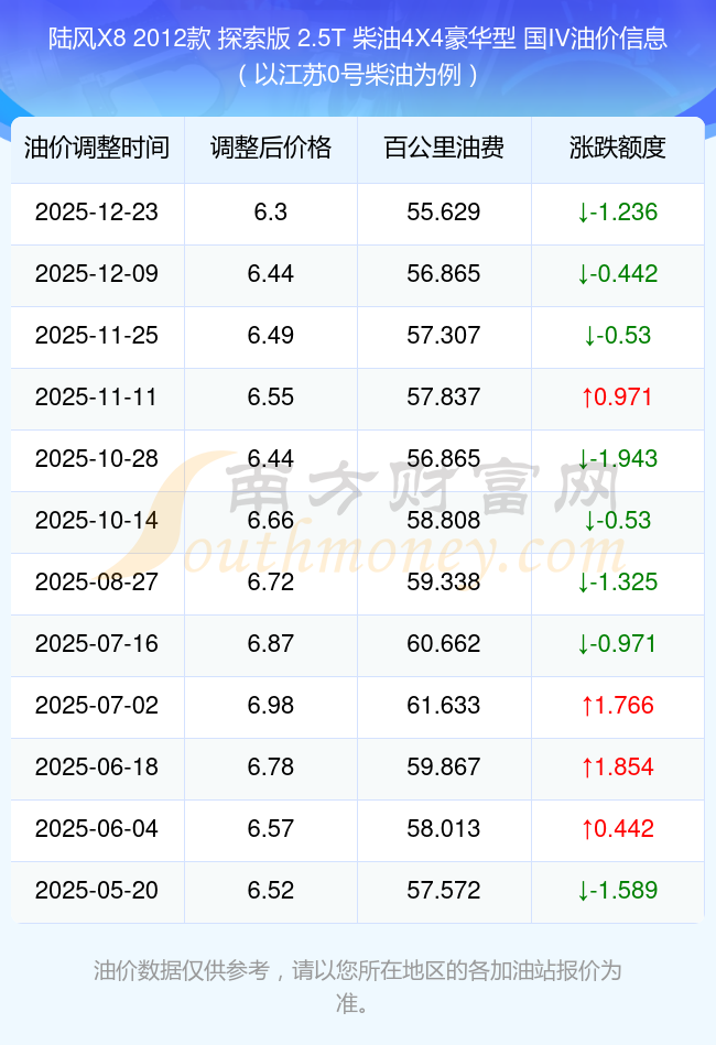 依照12月23日0號(hào)柴油最新調(diào)整價(jià)格6.3元/升來(lái)計(jì)算(以江蘇為例),該車(chē)型百公里的平均油費(fèi)是55.629元,依照上一輪12月9日調(diào)整價(jià)格6.44元/升來(lái)計(jì)算,百公里的平均油費(fèi)是56.865元,對(duì)比上一輪少花1.236元,下一輪的油價(jià)調(diào)整時(shí)間12月31日24時(shí)。
