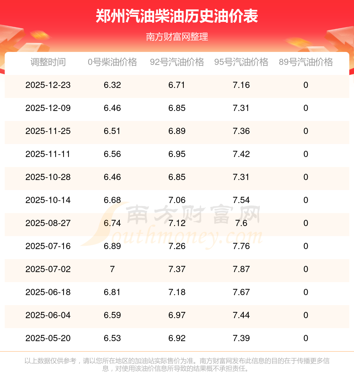 12月30日鄭州汽油、柴油每升的價(jià)格是多少?詳情如下:95號(hào)汽油為7.16元,下跌了0.15元;92號(hào)汽油為6.71元,下跌了0.14元;0號(hào)柴油為6.32元,下跌了0.14元,調(diào)整時(shí)間為12月23日。