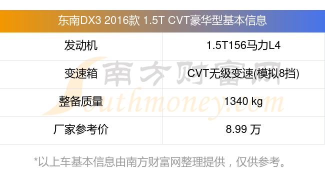 在動力方面,東南DX3 2016款 1.5T CVT豪華型搭載的是一臺1.5T156馬力L4渦輪增壓發(fā)動機,匹配CVT無級變速(模擬8擋)自動檔變速箱,燃料形式為汽油,常規(guī)整備質量1340kg,廠家參考價8.99萬元。