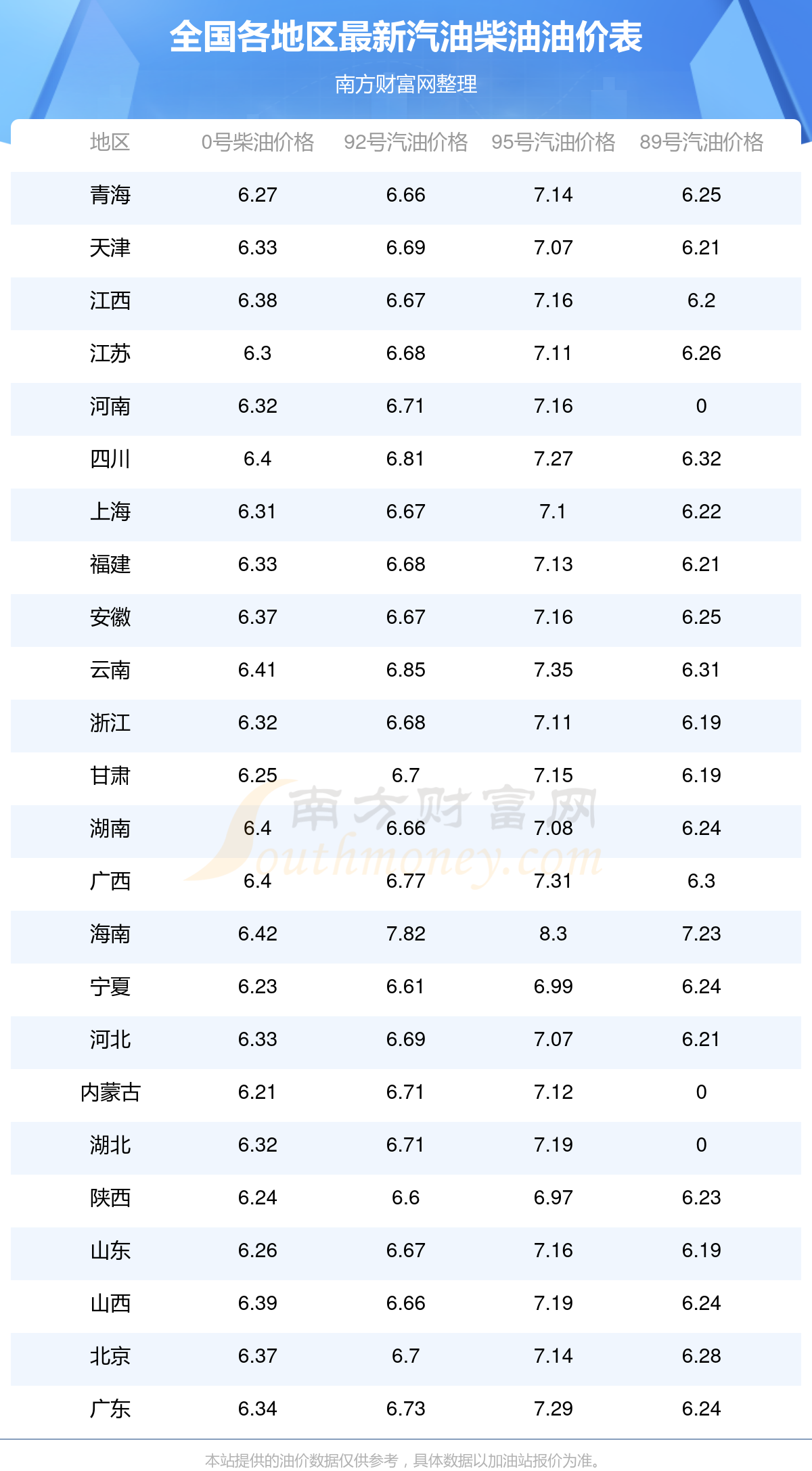 油價數(shù)據(jù)僅供參考,請以您所在地區(qū)的各加油站報價為準。